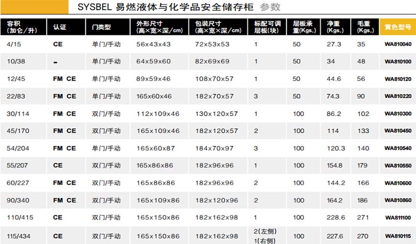 4、符合FM对易燃液体储存柜的认证标准(FMApproval Standard 6050),美国职业安全健康管理局(OSHA) 关于易燃及可燃液体的规定(OSHA 29 CFR 1910.106)和美国防火协会(NFPA)关于易燃液体与可燃液体的规定(NFPA CODE 30),及中国国家安全生产监督管理局《危险化学品安全管理条例》,为易燃液体及化学品储存提供安全防护保障